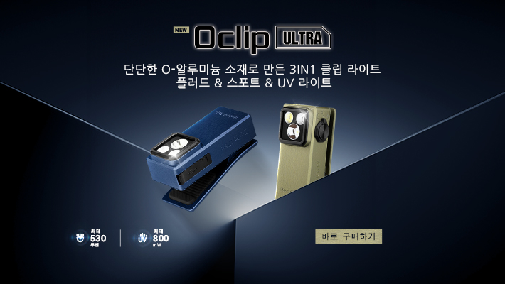 Oclip Ultra는 작고 강력한 EDC 미니 라이트로, 다양한 상황에서 유용하게 사용할 수 있는 제품입니다. 플러드 라이트, 스포트라이트, UV 라이트의 세 가지 모드를 통해 일상생활, 캠핑, 정비 등 다양한 용도로 활용할 수 있습니다. OAL-Olight의 알루미늄 합금으로 제작되어 강력한 내구성을 보유하고 있으며, IPX6 등급의 방수 기능을 제공합니다. 클립과 자석을 통한 다양한 휴대 방법 덕분에 사용자 여러분께서 언제 어디서나 유용하게 사용할 수 있을 것입니다.