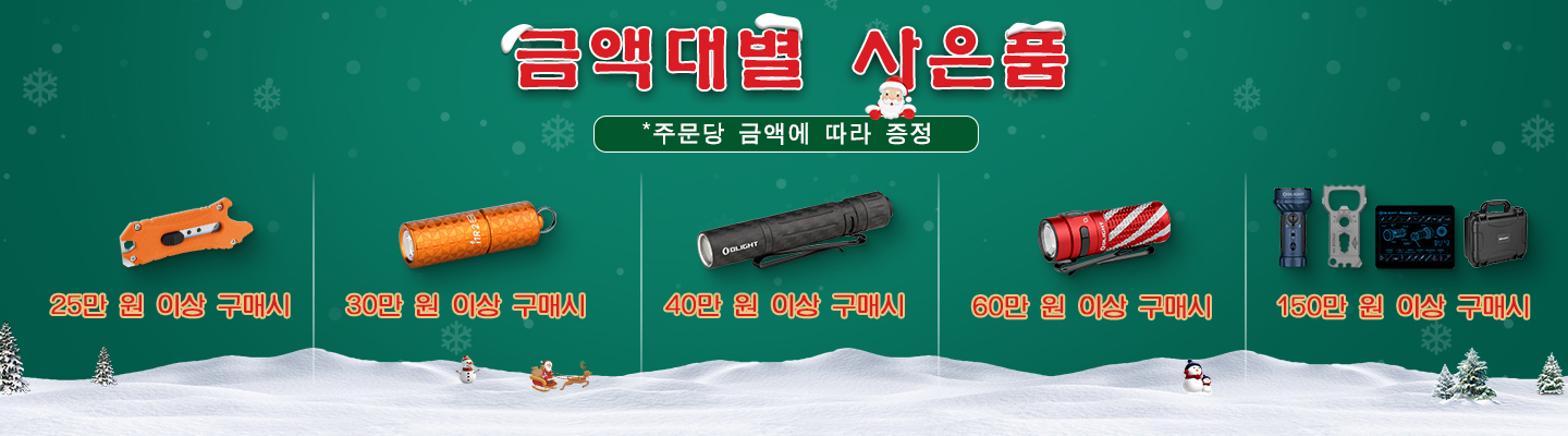 🎁 특별한 시즌, Olight과 함께 크리스마스를 축하해보세요. 흥미진진한 이벤트와 특별 혜택으로 여러분의 크리스마스를 잊지 못할 만한 경험으로 만들어드릴게요.