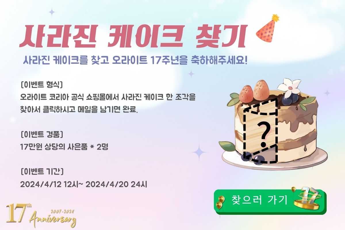 사라진 케이크를 찾고 오라이트 17주년을 축하해주세요!