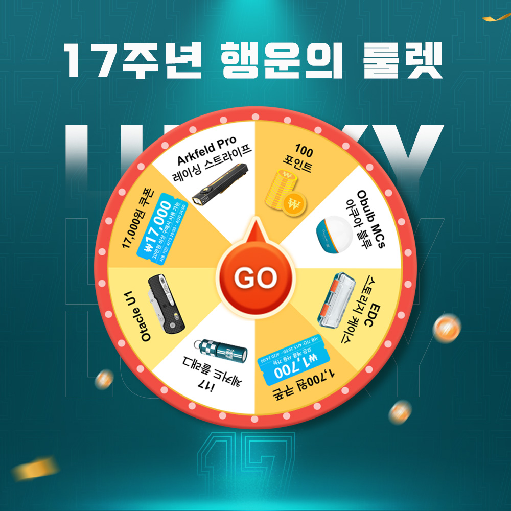 인기 이벤트 룰렛 컴백! 간단히 룰렛을 돌려보시고 17주년 경품을 확인해 보세요! 매일 한번의 기회가 있습니다~!