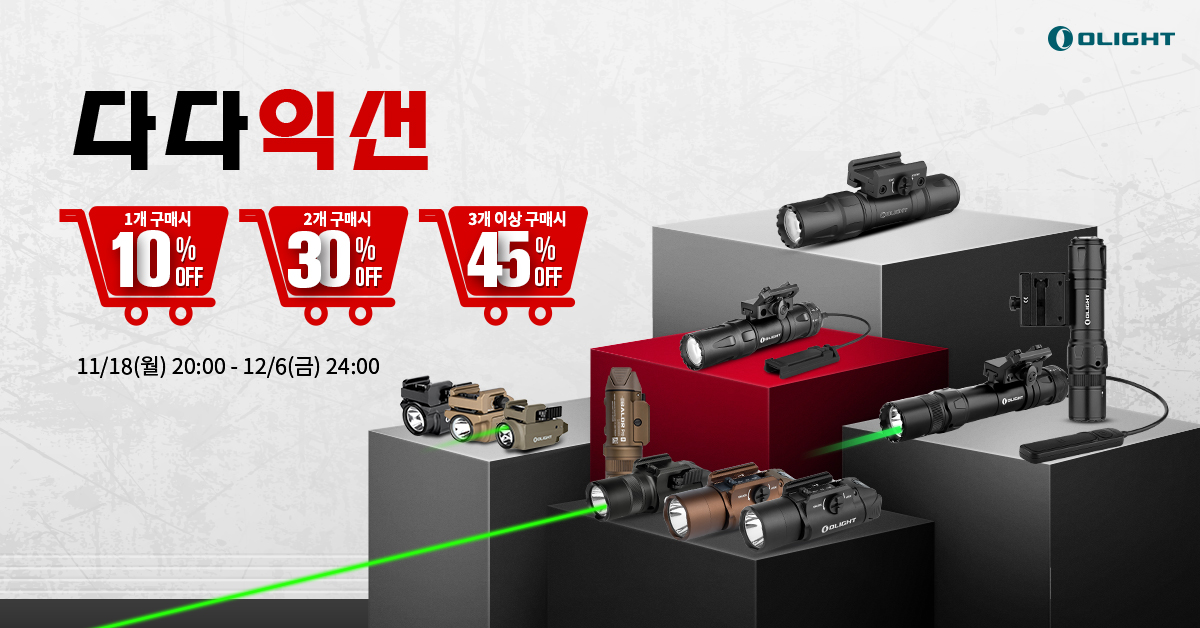 택티컬 라이트를 좋아하시는 분은 절대 [다다익선] 혜택을 꼭 확인해 보세요~ 3개 이상 제품 구매시 45% 할인입니다.