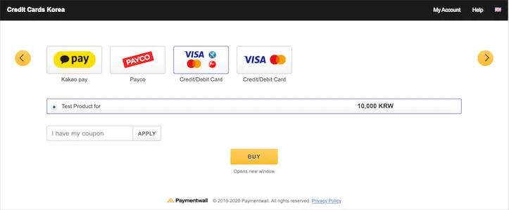 스텝1. 신용카드결제를 선택하고 ‘구매하기’ 버튼을 눌러주세요.