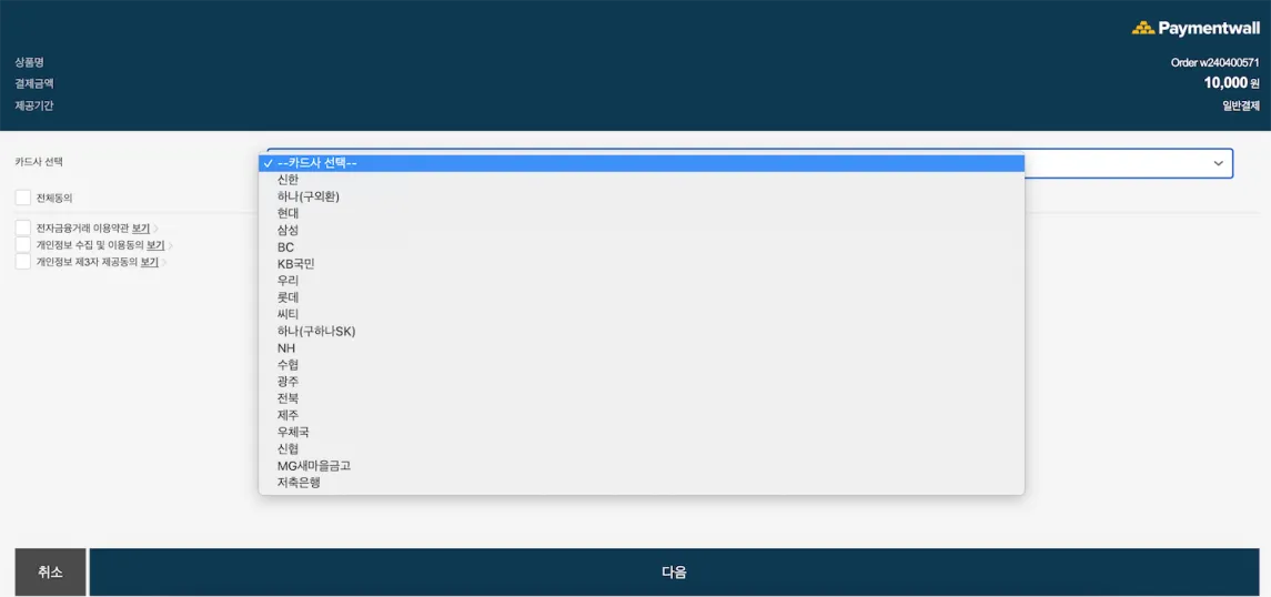 스텝3. 카드사 페이지로 들어가서 결제를 완료하세요.