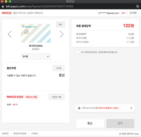 스텝4. 결제 정보를 확인하고 결제를 진행합니다.