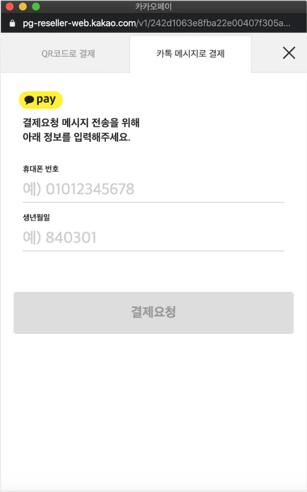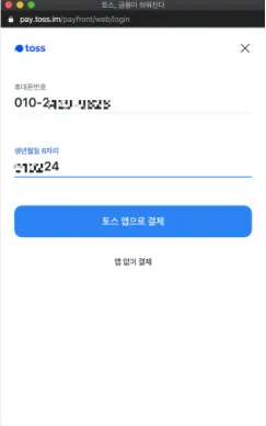 스텝2. 결제를 위해 등록된 전화번호와 생년월일을 기입해주세요.
