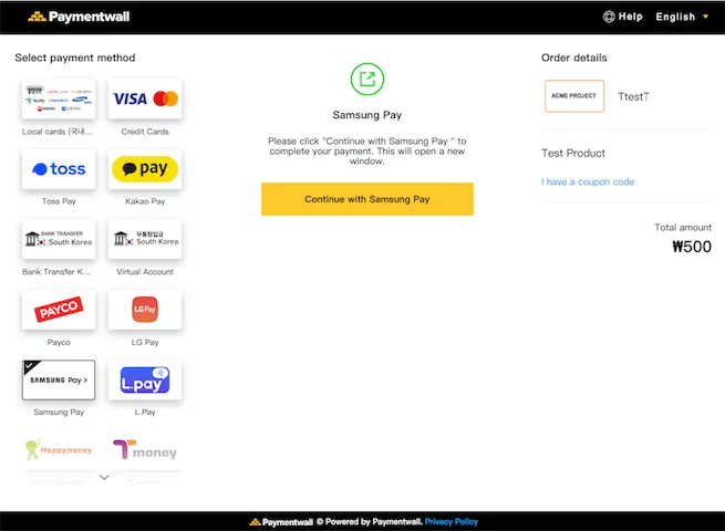 스텝1. 결제 수단으로 삼성페이를 선택합니다.