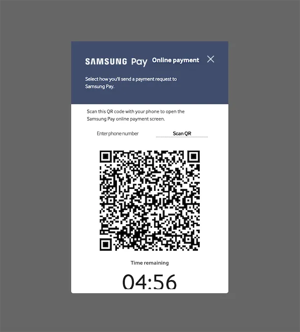 스텝3. 삼성페이를 이용하여 QR코드를 스캔하여 결제를 완료하세요.