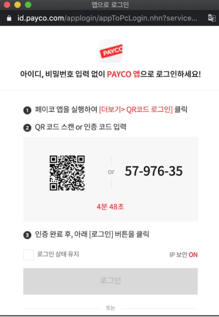 스텝2. 페이코앱으로 QR코드를 스캔하거나 페이코앱에서 인증 코드를 입력합니다.