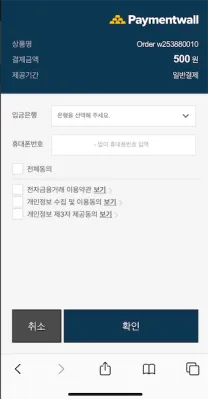 스텝3. 입금하실 은행을 선택하시고 휴대전화번호를 기입합니다.