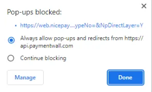 2. “https://api.paymentwall.com에서 팝업 및 리디렉션을 항상 허용”을 선택합니다.