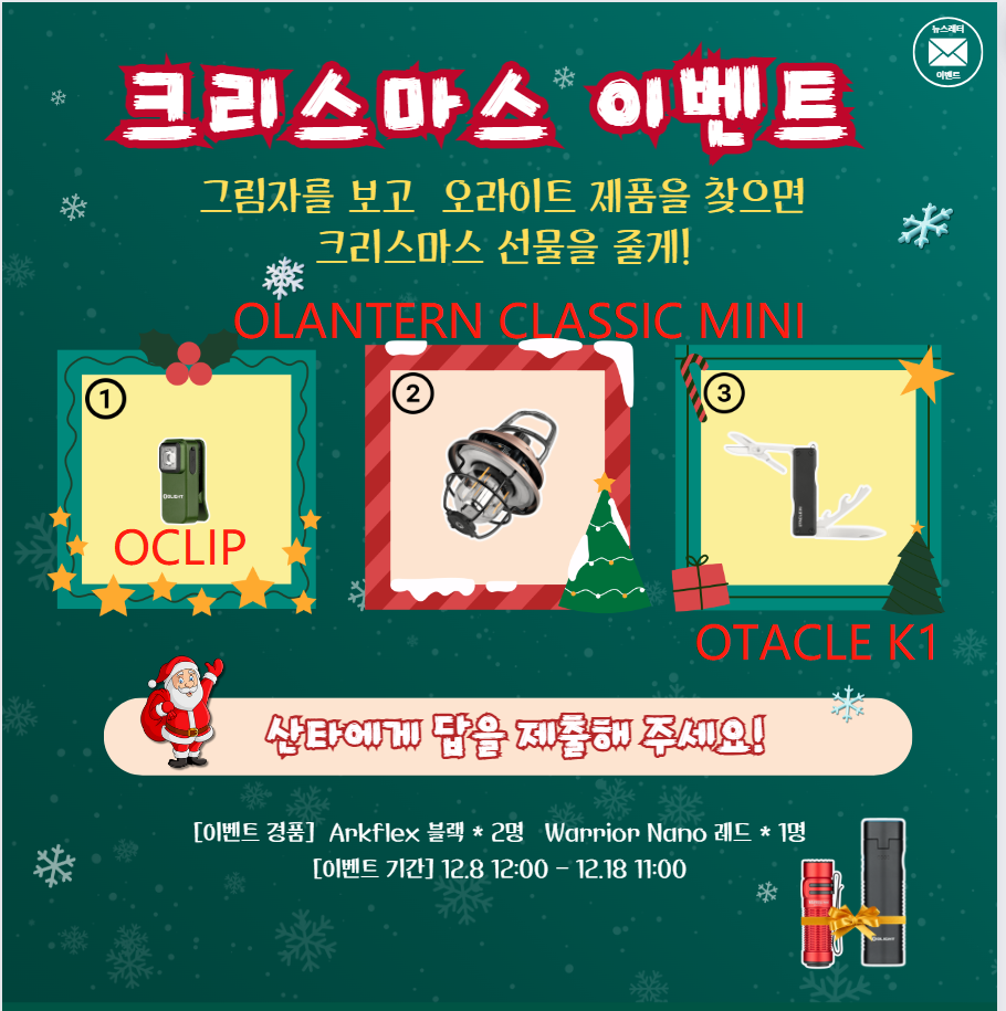 ![[뉴스레터 이벤트 당첨자 발표] '크리스마스 이벤트' 의 행운 주인공이 누구예요?](https://cdn.olightstore.kr/image/bkzxcc-2-ilvn7h.jpg@920w_518h_75q.webp)