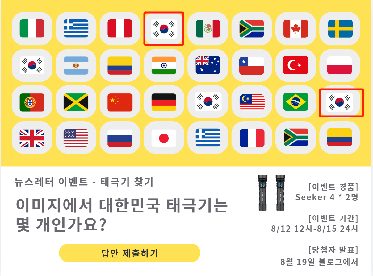 뉴스레터 8월 이벤트 [태극기 이벤트] 총 217개 제출을 받았습니다!