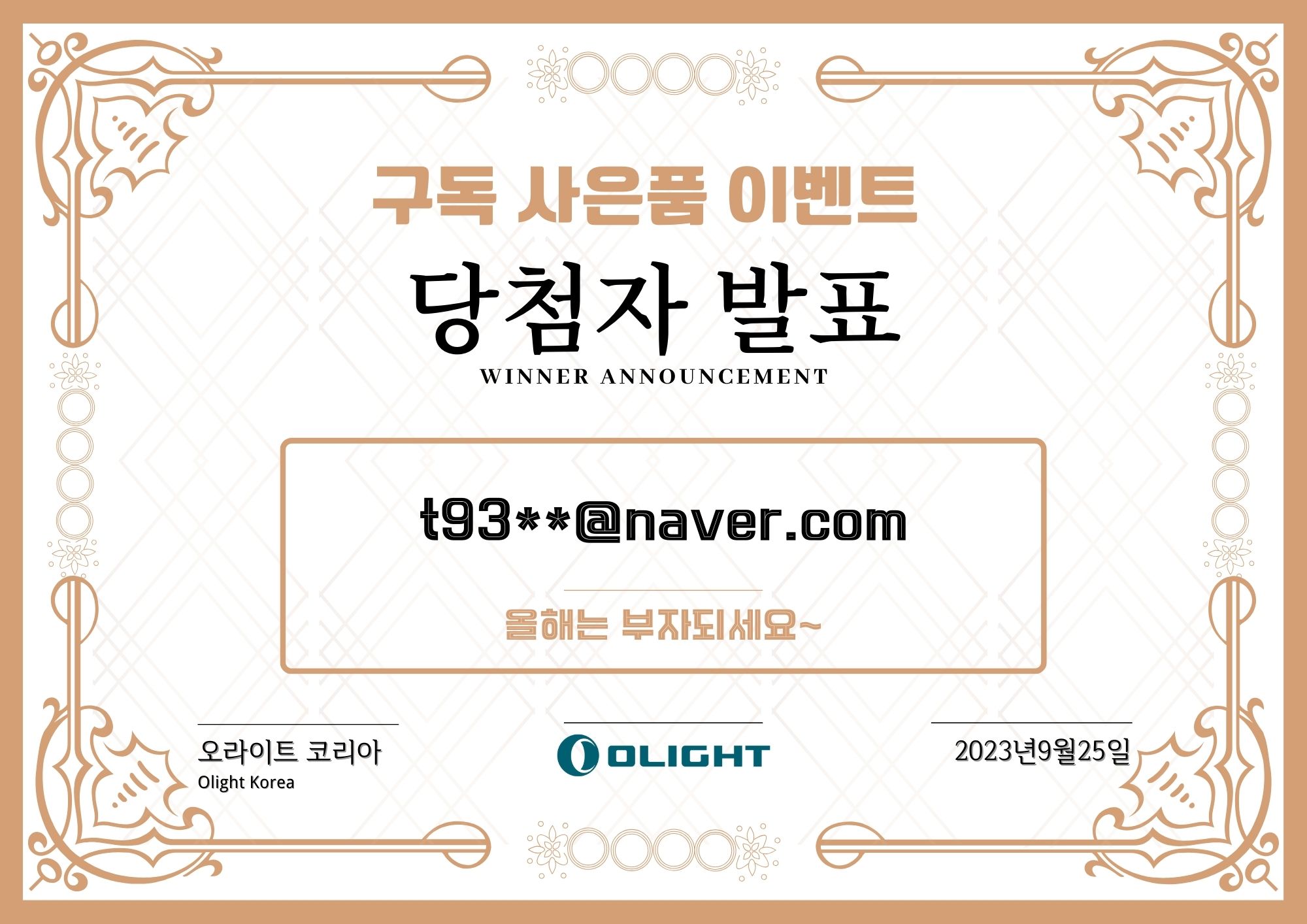 ![[뉴스레터 이벤트 당첨자 발표] 구독 사은품 이벤트+ 퀴즈 이벤트](https://cdn.olightstore.kr/image/bkzxcc-8-c8vy2v.jpg@920w_518h_75q.webp)